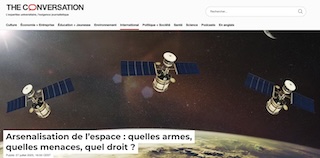 Katia Coutant, Associate Researcher at the Space Chair, talks to The Conversation about the increasingly popular term “weaponization of Space”. How does it differ from the notion of militarization? How do dual-use technologies blur the boundary between civilian and military? And what does the Space Treaty really say about the use of weapons?